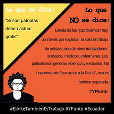 A pesar de este desgastante panorama social y económico, los artistas y gestores culturales permanecen en el intento de hacer validar, de forme justa y necesaria, su trabajo. Para que se les reconozca como sujetos de derechos, pero no menos importante, como seres humanos. Ya lo explica el siguiente gráfico, que fue realizado y publicado por artistas del país con el objetivo de defender su trabajo.